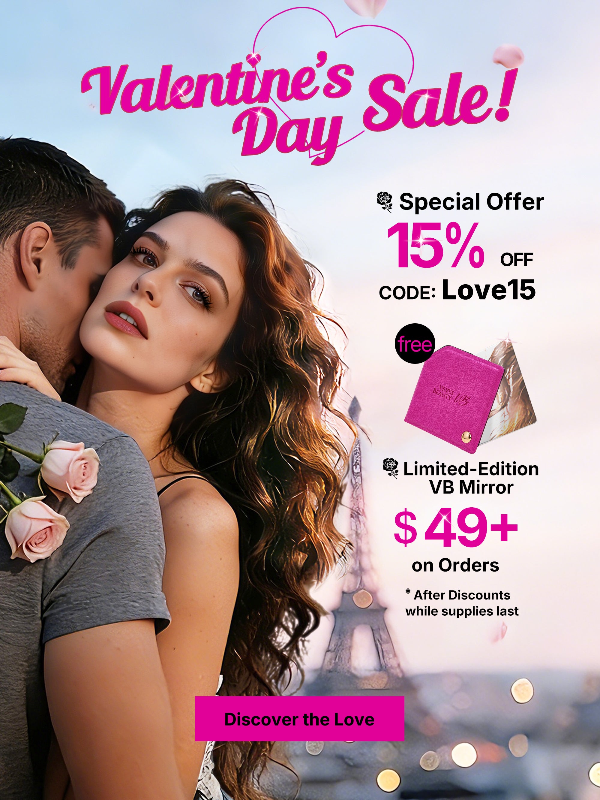 To celebrate love in all its forms, weāre offering a limited-time Valentineās Day event across all VEYESBEAUTY sites: